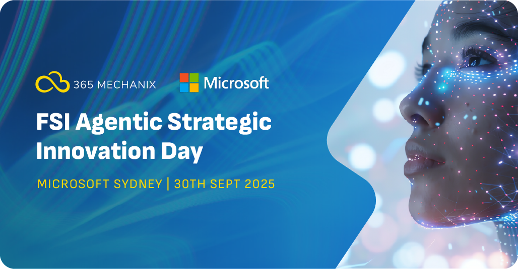 Join 365 Mechanix & Microsoft for a half-day strategic innovation workshop tailored for financial services leaders. Explore how Agentic AI and Copilot Studio Agents can transform business processes, drive operational efficiency, and unlock new customer value.   Agenda Highlights: 9:00AM – Welcome & Purpose of the Day 9:10AM – Industry Best Practices 9:20AM – Partner […]